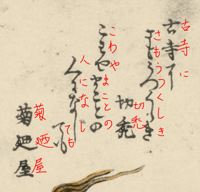 古寺に 然《さ》も美しき 切禿 怖や真《まこと》の 人に為《な》しても 菊廼屋《きくのや》