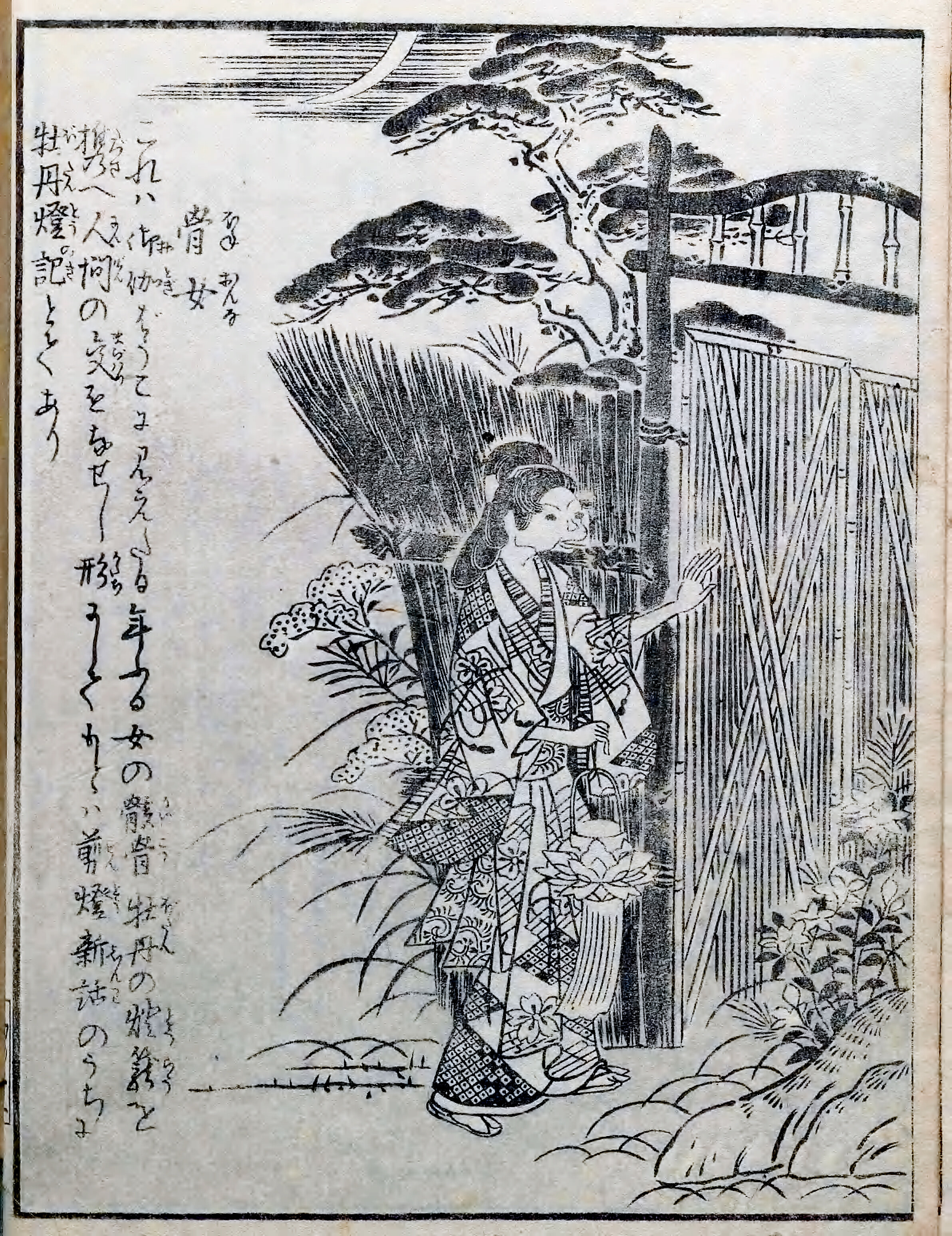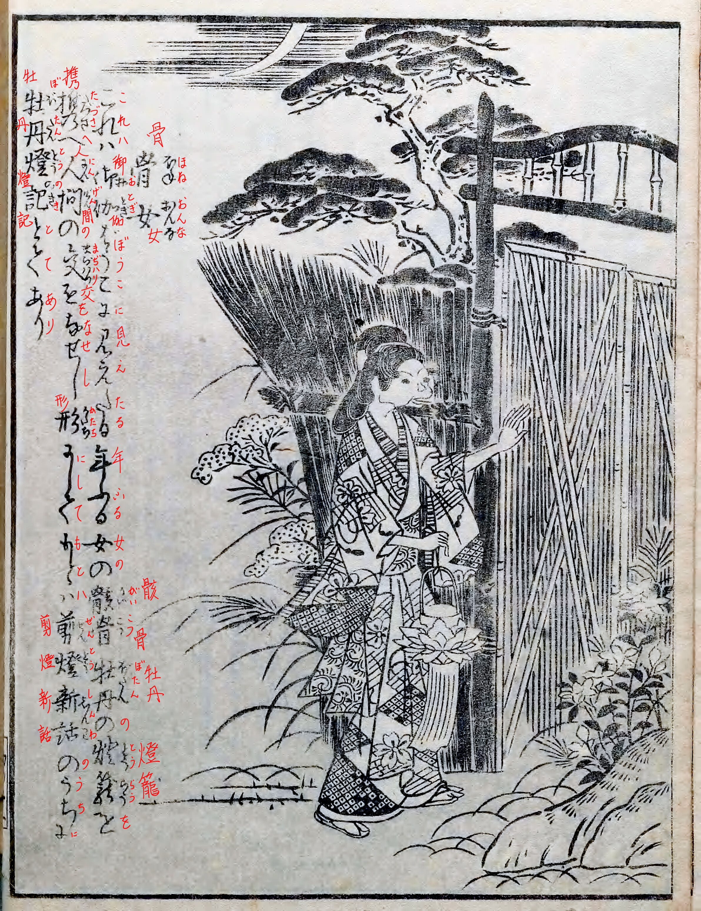 是ハ『御伽婢子《おとぎばうこ》』に見えたる、年古《としふ》る女の骸骨《がいこつ》、牡丹《ぼたん》の燈籠《とうらう》を携《たづさ》へ、人間《にんげん》の交ハりを為《な》せし形《かたち》にして、元ハ『剪燈新話《ゼんとうしんわ》』の内に「牡丹燈記《ぼたんとうのき》」とて有り。